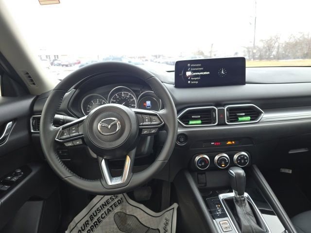Jet Black Mica 2022 Mazda CX-5 2.5 SONE OWNER!, BALANCE OF FULL FACTORY WARRANTY., NOT A RENTAL UNIT!, GREAT VEHICLE HISTORY!, FULLY SERVICED AND READY TO GO!, BLUETOOTH!, USB PORT!, REARVIEW CAMERA!, CLEAN CARFAX!, CARFAX ONE OWNER!, AWD. Odometer is 5283 miles below market average! 24/30 City/Highway MPG Well Equipped with: AWD, 4 Speakers, 4-Wheel Disc Brakes, 4.624 Axle Ratio, ABS brakes, Air Conditioning, Alloy wheels, AM/FM radio, AppLink/Apple CarPlay and Android Auto, Auto High-beam Headlights, Brake assist, Bumpers: body-color, Cargo Mat, Cloth Seat Trim, Delay-off headlights, Driver door bin, Driver vanity mirror, Dual front impact airbags, Dual front side impact airbags, E911 Automatic Emergency Notification, Electronic Stability Control, Emergency communication system: MAZDA CONNECT, Exterior Parking Camera Rear, Four wheel independent suspension, Front anti-roll bar, Front Bucket Seats, Front Center Armrest w/Storage, Front reading lights, Fully automatic headlights, Illuminated entry, Infotainment System Voice Command, Leather Shift Knob, Low tire pressure warning, Multifunction Commander Control, Occupant sensing airbag, Outside temperature display, Overhead airbag, Overhead console, Pandora, Panic alarm, Passenger door bin, Passenger vanity mirror, Power door mirrors, Power steering, Power windows, Radio Broadcast Data System Program Information, Radio data system, Radio: AM/FM/HD Audio System, Rain sensing wipers, Rear anti-roll bar, Rear reading lights, Rear window defroster, Rear window wiper, Remote keyless entry, SMS Text Msg Audio Delivery & Reply, Speed control, Speed-sensing steering, Split folding rear seat, Spoiler, Steering wheel mounted audio controls, Tachometer, Telescoping steering wheel, Tilt steering wheel, Traction control, Trip computer, Turn signal indicator mirrors, Variably intermittent wipers, and Wheels: 17 x 7J Aluminum Alloy.All of our vehicles are fully serviced and detailed to give you that New Car Experience without the New Car Price Call for details on this vehicle or any other quality pre-owned vehicle in our inventory.