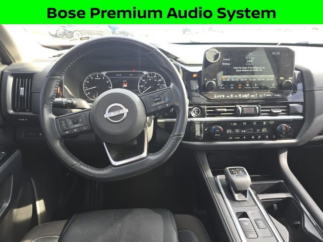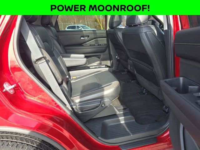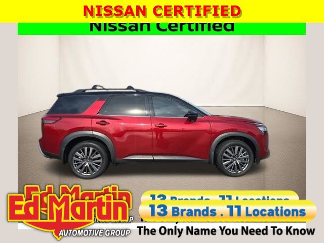 Scarlet Ember Tintcoat/Super Black 2023 Nissan Pathfinder SLBALANCE OF FULL FACTORY WARRANTY., NOT A RENTAL UNIT!, NISSAN CERTIFIED VEHICLE!, GREAT VEHICLE HISTORY!, NAVIGATION!, FULLY SERVICED AND READY TO GO!, BLUETOOTH!, USB PORT!, REARVIEW CAMERA!, HEATED SEATS!, CARFAX ONE OWNER!, LEATHER SEATING!, POWER MOONROOF!, PREMIUM PKG!, 4WD, 20 Painted Alloy Wheels, 2nd-Row Captain Chairs, 2nd-Row Removable Center Console, Black Appearance Package, Black Grille (K10), Black Liftgate Emblems, Bose Premium Audio System, Heated Rear Seats, Navigation system: NissanConnect Navigation, Panoramic Moonroof, Pathfinder Wordmark, SL Premium Package, Tow Hitch Receiver & Harness. Odometer is 6598 miles below market average! Well Equipped with: Black Appearance Package (Black Grille (K10), Black Liftgate Emblems, and Pathfinder Wordmark), SL Premium Package (20 Painted Alloy Wheels, 2nd-Row Captain Chairs, 2nd-Row Removable Center Console, Bose Premium Audio System, Heated Rear Seats, Panoramic Moonroof, and Tow Hitch Receiver & Harness), Nissan Certified Certified, 4WD, Navigation system: NissanConnect Navigation, 18 Machined Alloy Wheels, 3rd row seats: bench, 4-Wheel Disc Brakes, 6 Speakers, ABS brakes, Air Conditioning, Alloy wheels, AM/FM radio: SiriusXM, Auto High-beam Headlights, Auto-dimming Rear-View mirror, Automatic temperature control, Axle Ratio: 4.334, Black Splash Guards (Set of 4), Brake assist, Bumpers: body-color, Captain's Chairs Carpeted Floor Mats (Set of 4), Cross Bars, Delay-off headlights, Driver door bin, Driver vanity mirror, Dual front impact airbags, Dual front side impact airbags, Electronic Stability Control, Emergency communication system: NissanConnect Services, Exterior Parking Camera Rear, Four wheel independent suspension, Front anti-roll bar, Front Bucket Seats, Front Center Armrest, Front dual zone A/C, Front reading lights, Fully automatic headlights, Garage door transmitter: HomeLink, Heated door mirrors, Heated Front Bucket Seats, Heated front seats, Heated steering wheel, Illuminated entry, Knee airbag, Leather Seating Surfaces, Leather steering wheel, LED Fog Lamps, Low tire pressure warning, NissanConnect w/Navigation & Services, Occupant sensing airbag, Outside temperature display, Overhead airbag, Overhead console, Panic alarm, Passenger door bin, Passenger vanity mirror, Power door mirrors, Power driver seat, Power Liftgate, Power passenger seat, Power steering, Power windows, Radio data system, Radio: AM/FM Audio System, Rear air conditioning, Rear anti-roll bar, Rear reading lights, Rear seat center armrest, Rear side impact airbag, Rear window defroster, Rear window wiper, Reclining 3rd row seat, Remote keyless entry, Security system, Speed control, Speed-sensing steering, Split folding rear seat, Spoiler, Steering wheel mounted audio controls, Tachometer, Telescoping steering wheel, Tilt steering wheel, Traction control, Trip computer, Turn signal indicator mirrors, and Variably intermittent wipers.All of our vehicles are fully serviced and detailed to give you that New Car Experience without the New Car Price Call for details on this vehicle or any other quality pre-owned vehicle in our inventory.