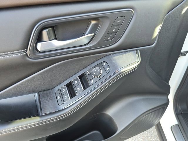 Pearl White Tricoat/Super Black 2023 Nissan Rogue SL PREMIUMONE OWNER L0CAL TRADE!, NISSAN CERTIFIED VEHICLE!, GREAT VEHICLE HISTORY!, NAVIGATION!, FULLY SERVICED AND READY TO GO!, BLUETOOTH!, USB PORT!, REARVIEW CAMERA!, HEATED SEATS!, CARFAX ONE OWNER!, LEATHER SEATING!, PANORAMIC MOONROOF!, PREMIUM PKG!, AWD. 28/34 City/Highway MPG Nissan Certified Details:* 7 Year/100,000 Mile Limited Warranty, 24/7 Hour Roadside Assistance, Carfax Vehicle History Report, Plus 1 Year Pre-Paid Maintenance Included. Gas Powered Nissan Models Only.* Transferable Warranty* Limited Warranty: 84 Month/100,000 Mile (whichever occurs first)* Warranty Deductible: $100* 167 Point Inspection* Roadside Assistance* Vehicle HistoryWell Equipped with: SL Premium Package (Bose Premium Audio System, Front, Side & Rear Sonar, Motion Activated Power Liftgate, ProPILOT Assist w/Navi-link, Radio: AM/FM NissanConnect w/Navigation, Rear Door Sunshades, Traffic Sign Recognition, and Tri-Zone HVAC), Nissan Certified Certified, AWD, 19 Aluminum Alloy Wheels, 4-Wheel Disc Brakes, 5.604 Axle Ratio, 6 Speakers, ABS brakes, Air Conditioning, Alloy wheels, AM/FM Radio, AM/FM radio: SiriusXM, Auto High-beam Headlights, Auto-dimming Rear-View mirror, Automatic temperature control, Black Splash Guards (Set of 4), Brake assist, Bumpers: body-color, Chrome Rear Bumper Protector, Delay-off headlights, Driver door bin, Driver vanity mirror, Dual front impact airbags, Dual front side impact airbags, Electronic Stability Control, Emergency communication system: NissanConnect Services, First Aid Kit, Floor Mats w/2-Piece Cargo Area Protector, Four wheel independent suspension, Frameless Rearview Mirror w/Universal Remote, Front anti-roll bar, Front Bucket Seats, Front Center Armrest, Front dual zone A/C, Front reading lights, Fully automatic headlights, Heated door mirrors, Heated Front Bucket Seats, Heated front seats, Heated steering wheel, Illuminated entry, Illuminated Kick Plates, Knee airbag, Leather steering wheel, Leather-Appointed Seat Trim, Low tire pressure warning, Memory seat, Navigation System, NissanConnect featuring Apple CarPlay and Android Auto, Occupant sensing airbag, Outside temperature display, Overhead airbag, Overhead console, Panic alarm, Passenger door bin, Passenger vanity mirror, Power door mirrors, Power driver seat, Power Liftgate, Power moonroof, Power passenger seat, Power steering, Power windows, Radio data system, Rear anti-roll bar, Rear Parking Sensors, Rear reading lights, Rear seat center armrest, Rear side impact airbag, Rear window defroster, Rear window wiper, Remote keyless entry, Security system, Speed control, Speed-Sensitive Wipers, Split folding rear seat, Spoiler, Steering wheel mounted audio controls, Tachometer, Telescoping steering wheel, Tilt steering wheel, Traction control, Trip computer, Turn signal indicator mirrors, USB Charging Cable Set - Nissan, and Variably intermittent wipers.All of our vehicles are fully serviced and detailed to give you that New Car Experience without the New Car Price Call for details on this vehicle or any other quality pre-owned vehicle in our inventory.