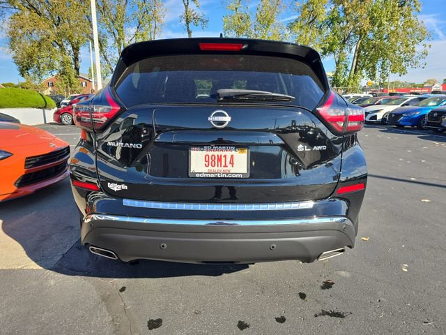 Super Black 2024 Nissan Murano SLBALANCE OF FULL FACTORY WARRANTY., NISSAN CERTIFIED VEHICLE!, GREAT VEHICLE HISTORY!, NAVIGATION!, FULLY SERVICED AND READY TO GO!, BLUETOOTH!, USB PORT!, REARVIEW CAMERA!, HEATED SEATS!, CARFAX ONE OWNER!, LEATHER SEATING!, PANORAMIC SUNROOF!!, CVT with Xtronic, AWD. Odometer is 7550 miles below market average! 20/28 City/Highway MPG Nissan Certified Details:* Limited Warranty: 84 Month/100,000 Mile (whichever occurs first)* Roadside Assistance* 7 Year/100,000 Mile Limited Warranty, 24/7 Hour Roadside Assistance, Carfax Vehicle History Report, Plus 1 Year Pre-Paid Maintenance Included. Gas Powered Nissan Models Only.* Vehicle History* 167 Point Inspection* Warranty Deductible: $100* Transferable WarrantyWell Equipped with: Nissan Certified Certified, CVT with Xtronic, AWD, 11 Speakers, 4-Wheel Disc Brakes, 4.667 Axle Ratio, ABS brakes, Air Conditioning, Alloy wheels, AM/FM radio: SiriusXM, AM/FM/CD/MP3/WMA Audio System, Auto High-beam Headlights, Auto-dimming Rear-View mirror, Automatic temperature control, Blind Spot Warning, Brake assist, Bumpers: body-color, CD player, Child-Seat-Sensing Airbag, Compass, Delay-off headlights, Driver door bin, Driver vanity mirror, Dual front impact airbags, Dual front side impact airbags, Electronic Stability Control, Exterior Parking Camera Rear, Four wheel independent suspension, Front anti-roll bar, Front Bucket Seats, Front Center Armrest, Front dual zone A/C, Front fog lights, Front reading lights, Fully automatic headlights, Garage door transmitter: HomeLink, Heated door mirrors, Heated Front Bucket Seats, Heated front seats, Heated rear seats, Heated steering wheel, Illuminated entry, Knee airbag, Leather steering wheel, Leather-Appointed Seat Trim, Low tire pressure warning, Memory seat, Navigation system: NissanConnect with Navigation and Services, NissanConnect featuring Apple CarPlay and Android Auto, Occupant sensing airbag, Outside temperature display, Overhead airbag, Overhead console, Panic alarm, Passenger door bin, Passenger vanity mirror, Power door mirrors, Power driver seat, Power Liftgate, Power moonroof, Power passenger seat, Power steering, Power windows, Radio data system, Rear anti-roll bar, Rear reading lights, Rear seat center armrest, Rear side impact airbag, Rear window defroster, Rear window wiper, Remote keyless entry, Security system, Speed control, Speed-sensing steering, Speed-Sensitive Wipers, Split folding rear seat, Spoiler, Steering wheel mounted audio controls, Tachometer, Telescoping steering wheel, Tilt steering wheel, Traction control, Trip computer, Turn signal indicator mirrors, Variably intermittent wipers, and Wheels: 20 Machined Aluminum-Alloy.All of our vehicles are fully serviced and detailed to give you that New Car Experience without the New Car Price Call for details on this vehicle or any other quality pre-owned vehicle in our inventory.